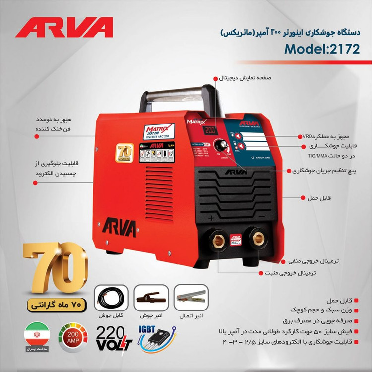 اینورترجوشکاری200آمپر ماتریکسکد۲۱۷۲درای ۲فن صنعتی
